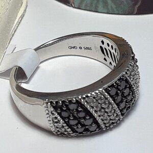 .75ctw Black & White Diamond Diagonal Striped Sterling Silver Band Ring #19913