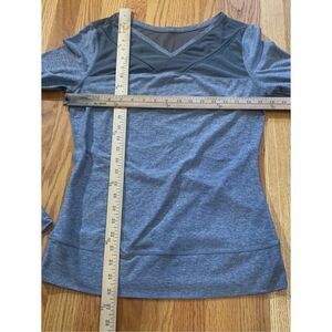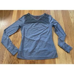 76- LULULEMON JUST BREATHE gray mesh YOGA LONG SLEEVE SHIRT TOP sz M 6 8