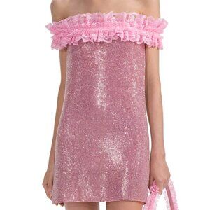 760$ Self-Portrait X Christopher Kane Crystal Fishnet Mini Dress Size 4 US Pink