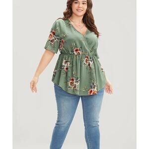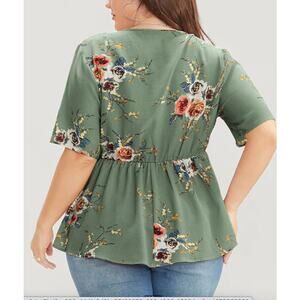 Bloomchic Floral Print Wrap Ruffles Asymmetrical Hem Blouse Sage Green size 12 NWT