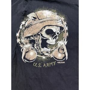 This black, size L tee features a bold skull and eagle graphic, embodying the "Never Accept Defeat" motto.