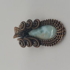764- Larimar Natural Stone Wire Wrapped Pendant Necklace Handmade NWT