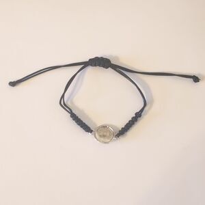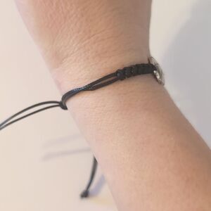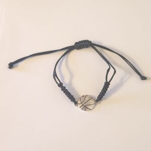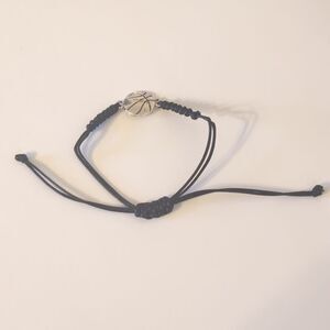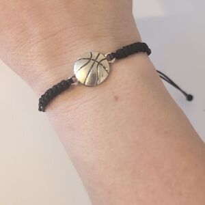 Black Woven Adjustable Slider Bracelet with Silver Basketball Charm