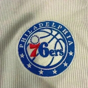 76ers NBA basketball 3/4 zip pullover Polyester/spandex blend White with grey pin stripe