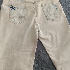 Hello Posher family if you need a pair of jeans I have the deal for you, the description of the merchandise is white colored jeans with blue and red accents. The look is trendy and will go well with a stylish shirt. A good look for the young and vintage age groups. Also, visit my other store at Obsidiancreators.esty.com.