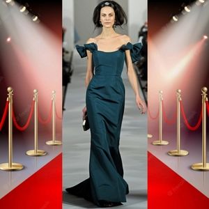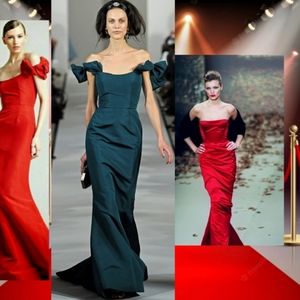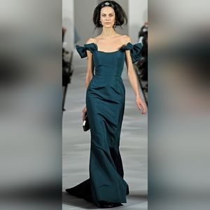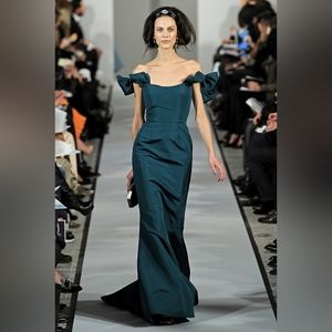 Oscar de la Renta give us pure style and elegance with this stunning peacock blue bow runway silk gown.