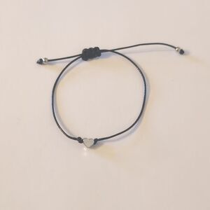 Black Adjustable Slider Bracelet with Silver Heart Charm