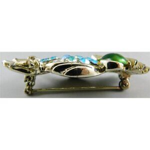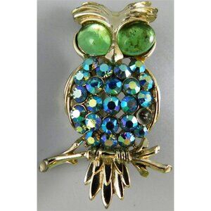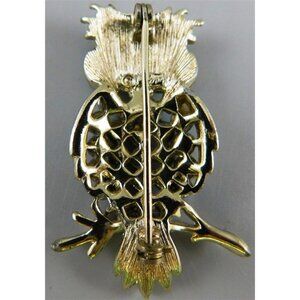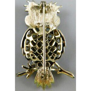 7/777 Vintage Coro Owl Silver Tone Pin 2 inches ~ Missing 1 AB Stone ~ As-Is