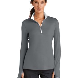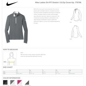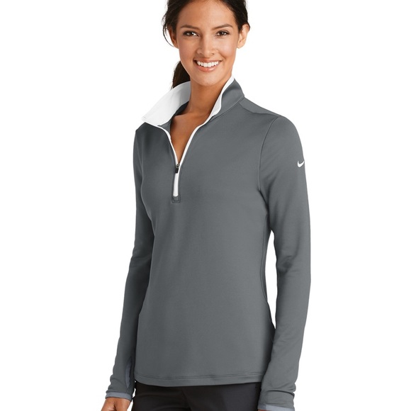 , this cover-up performs with comfortable stretch for uninhibited movement and Dri-FIT moisture management technology for exceptional cooling. The design includes a contrast collar and zipper, open cuffs and an open hem. Tailored for a feminine fit. The contrast Swoosh design trademark is embroidered on the upper left sleeve.Thumbholes at cuffs for warmth and enhanced fit. Made of 7.6-ounce, 93/
