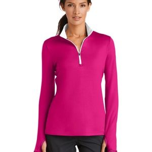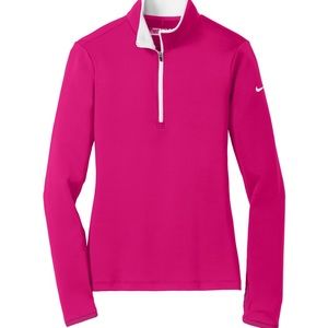 this cover-up performs with comfortable stretch for uninhibited movement and Dri-FIT moisture management technology for exceptional cooling. The design includes a contrast collar and zipper, open cuffs and an open hem. Tailored for a feminine fit. The contrast Swoosh design trademark is embroidered on the upper left sleeve.Thumbholes at cuffs for warmth and enhanced fit. Made of 7.6-ounce, 93/7 polyester/spandex Dri-FIT fabric.