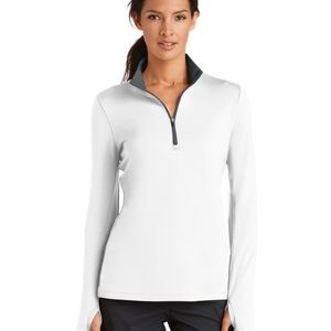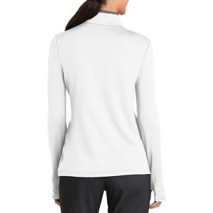 Built for the course, gym or just around town, this cover-up performs with comfortable stretch for uninhibited movement and Dri-FIT moisture management technology for exceptional cooling. The design includes a contrast collar and zipper, open cuffs and an open hem. Tailored for a feminine fit. The contrast Swoosh design trademark is embroidered on the upper left sleeve.Thumbholes at cuffs for warmth and enhanced fit. Made
