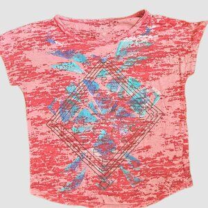 77KIDS GIRLS ORANGE PEACE T-SHIRT W/GEOMETRIC GRAPHIC IN FRONT SIZE SMALL