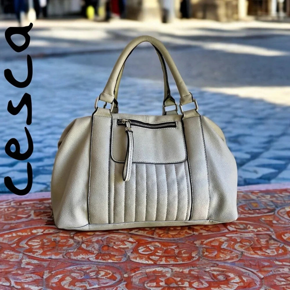 77%OFF❣️Cesca Beige Cream Ribbed Bucket Handbag