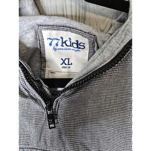 77kids by American Eagle Youth XL 14 Hoodie Black White Houndstooth Half Zip
