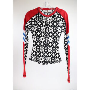 The $78 FP Movement Women's Kick Off Printed Layer Top in Aspen Onyx Size S is a stylish and versatile activewear top from Free People. The top features a bold black, white, and red color scheme, perfect for adding a pop of color to your workout ensemble. With a casual style and regular fit, this top is ideal for active women looking for both comfort and style in their clothing choices.