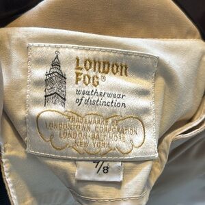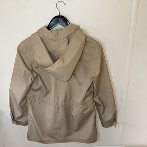 7/8 size London fog, lightweight jacket with removable hood, and two deep pockets