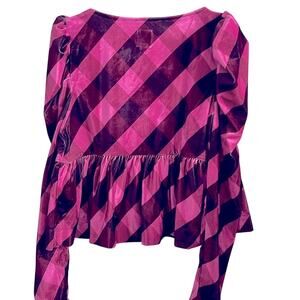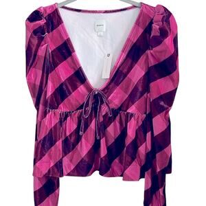 $78 NWT ANTHROPOLOGIE MAEVE velvet babydoll top pink plaid L