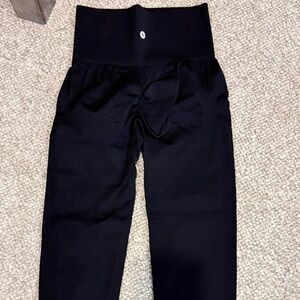 Top quality activewear from Halara; 7/8 length black leggings with cinched behind