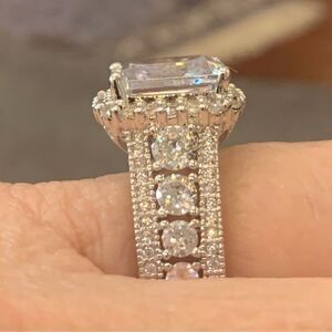 7.83ctw White Diamond Simulant Rhodium Over Sterling Silver ring size 7 lovely