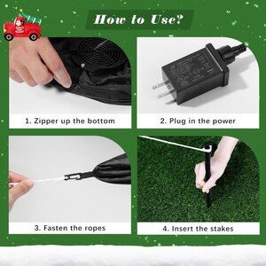 Premium Material - Made of strong and durable waterproof 210T polyester fabric, it is tear and scratch resistant. Excellent stitching and strong zipper enhance the durability of the inflatable decoration, making it usable in different weather conditions and suitable for outdoor Christmas decorations. Built-in LED white lights can create a vivid visual effect and ambiance.