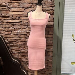 78. Pink Square Neck Bondage Bodycon Midi dress NWT Boutique