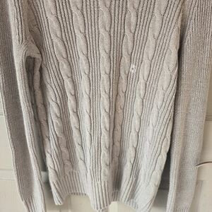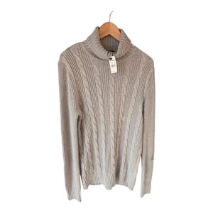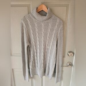 Wrap yourself in the cozy comfort of this Express turtleneck sweater, a chic addition to any wardrobe. Its classic cable-knit design and soft gray hue make it a versatile piece perfect for layering or wearing on its own. The long sleeves and high-neck silhouette provide warmth and style, especially suited for cooler weather.