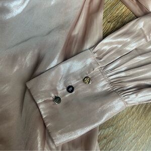 Tags: New Year’s Eve, festive, party, date night, shiny, metallic, blouse, hook closure