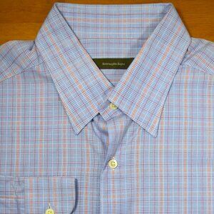 $790 NWT ERMENEGILDO ZEGNA COTTON MEN BLUE LONG SLEEVE SHIRT MEN XXL ITALY