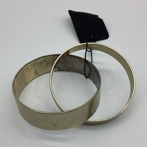 791.Set of 2 Interlocking Antique Brass & Gold Bangles – Dual Widths | $18
