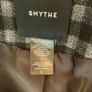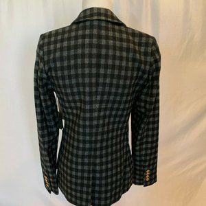New Authentic Smythe Portrait Neck Blazer in size 6. This may fit a size 4 if you don't like it too tight. Please see measurements. Color is Grey/Black Check. MSRP $795.