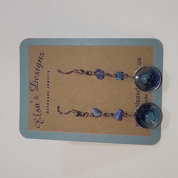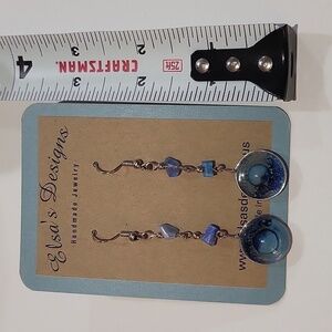 Blue Glass And Natural Chips Stone Handmade Women's Earrings NWT
