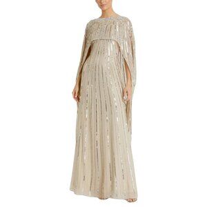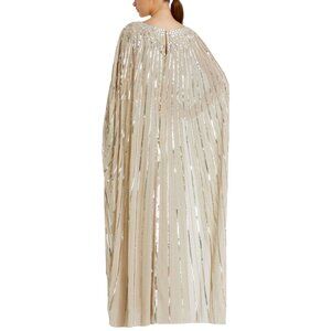 $798 Mac Duggal 93869 Size 10 Champagne Gold Sequin Column Cape Gown Maxi Dress