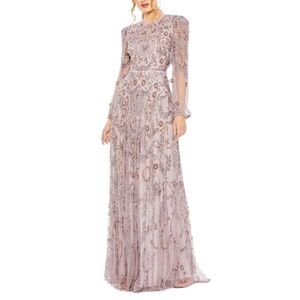 $798 Mac Duggal 93930 Size 16 Pink Purple Long Sleeve Evening Maxi Dress Gown