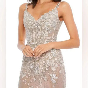 $798 NWTs Mac Duggal FLORAL EMBROIDERED CORSET BODICE GOWN