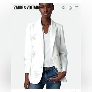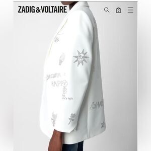 $798 Zadig & Voltaire Viva Multistrass white Blazer NWT