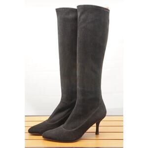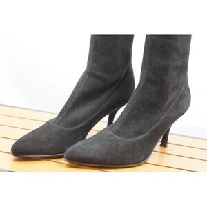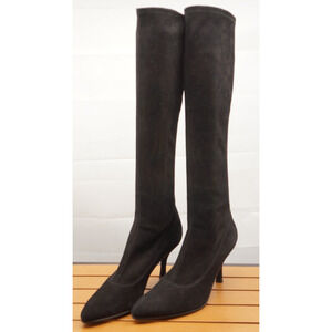 $799 Gorgeous Stuart Weitzman pull on suede stretch BLACK boots US 8 M SEXY