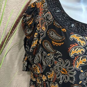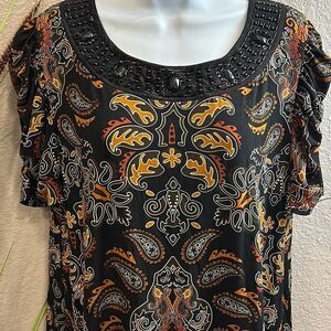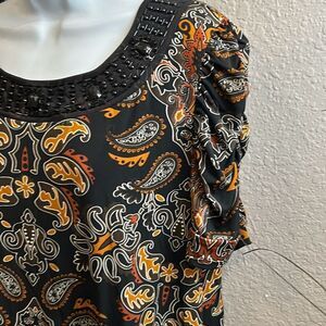 #79 APT.9 short sleeve, beaded, embellished collar, paisley blouse size large