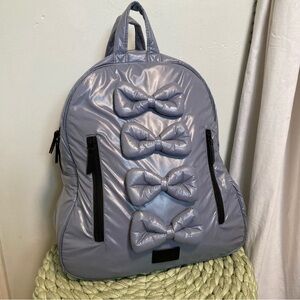 7AM Enfant Voyage Midi Bows Haze Gray/ Purple Nylon Puffy Backpack