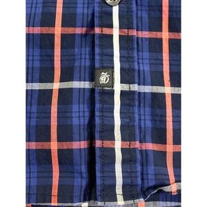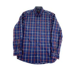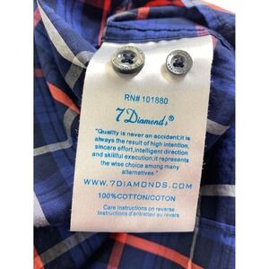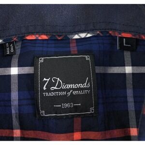 7Diamonds Men's Button Front Flip Cuff 100% Cotton Navy Blue Plaid Shirt Large
