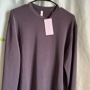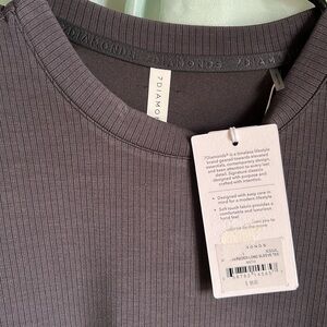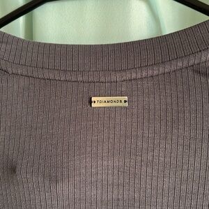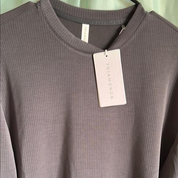 Stylish ribbed top in a soft gray shade by 7Diamonds. Timeless lifestyle geared toward elevated wardrobe essentials. Slick lined details and contemporary design. Business or leisure this is a must have wardrobe piece. New with tags. Size small. Does fit oversized. Beautiful