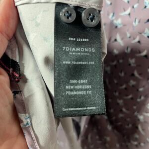 7Diamonds Shirt 4 Way Stretch Lavender Bird Print Short Sleeve Preppy Dressy S