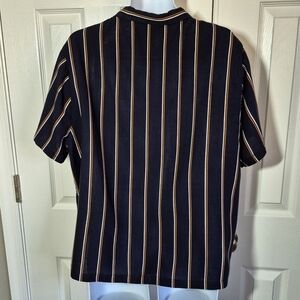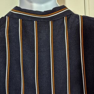 7Diamonds striped short sleeve button down shirt navy blue orange white mens XL