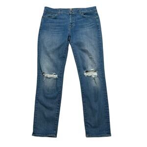 7FAM 7 For All Mankind Josefina Skinny Boyfriend Jeans Distressed Knees Size 30