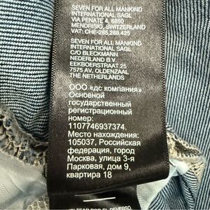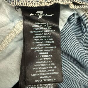 These blue flare jeans from 7 For All Mankind feature a medium-to-dark wash with natural fading and whiskering for a vintage-inspired look. The wide-leg design offers a relaxed fit, while the distressed hem adds a touch of casual elegance. Perfect for a laid-back day out, these jeans effortlessly combine style and comfort.