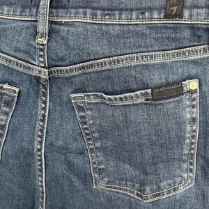 7FAM Alexa High Rise Cropped Flare Wide Leg Jeans Distressed Raw Hem Size 29