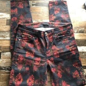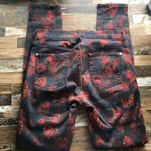 Gorgeous red red bloom against an inky background adding romance to Cotton-sateen skinny jeans with curve hugging stretch
