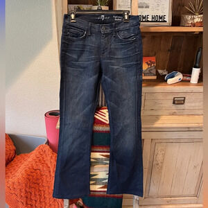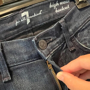 EUC 7FAM High waist bootcut jeans size 26. These jeans were worn to a country music concert and that’s it! Paired with boots these jeans are a knockout! Dark denim, classic 5 pocket jeans. High waisted so looks super cute with a crop or tucked in top! Check photos for measurements in inches!
