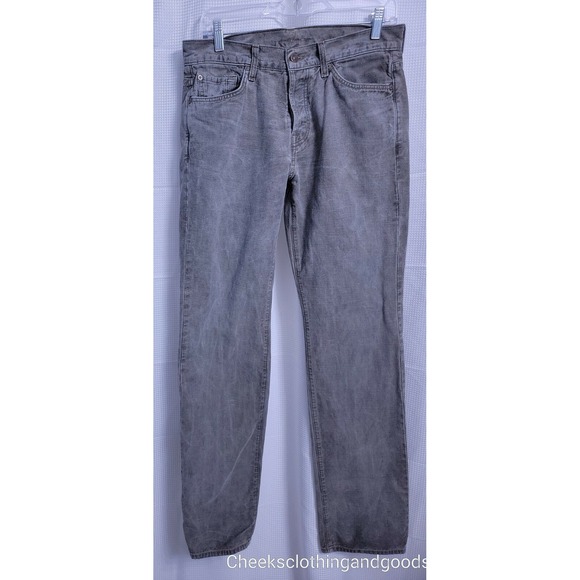 This is a 7FAM / 7 For All of Mankind Standard Fit Button Fly Greyish Brown Jeans Men's 31x34. This is in excellent condition.