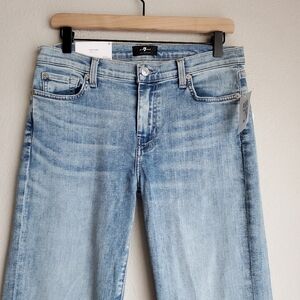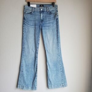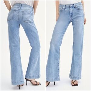 Mid-rise flare is embellished with whiskering and veining accents to compliment its bright blue Saratoga wash. Added touches including our signature 7 pocket stitching, and sustainable nickel hardware, elevate this style to icon status.
