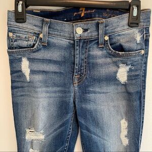 These jeans are in very excellent used condition. They are super buttery soft and stretchy. 98% cotton, 2% spandex. Medium wash.
